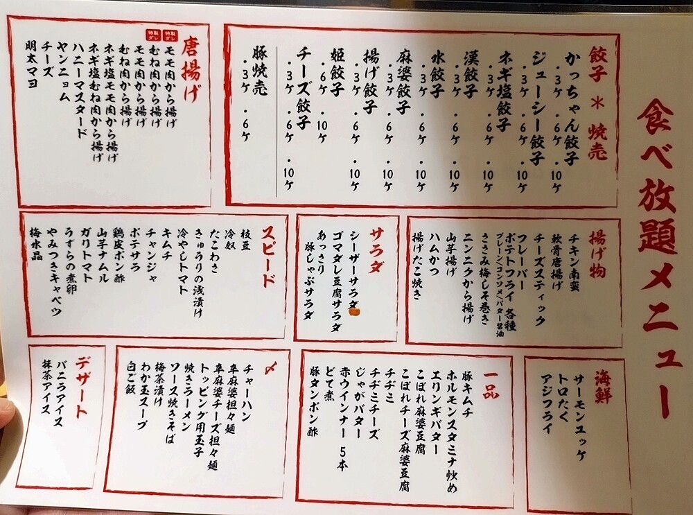 餃子中心で100品食べ飲み放題で2200円のお店へ行ったのですが料理も豊富で普通に美味しく、食べ飲み放題でこのコスパは驚きでした。