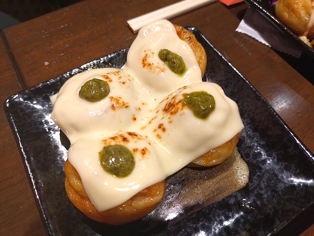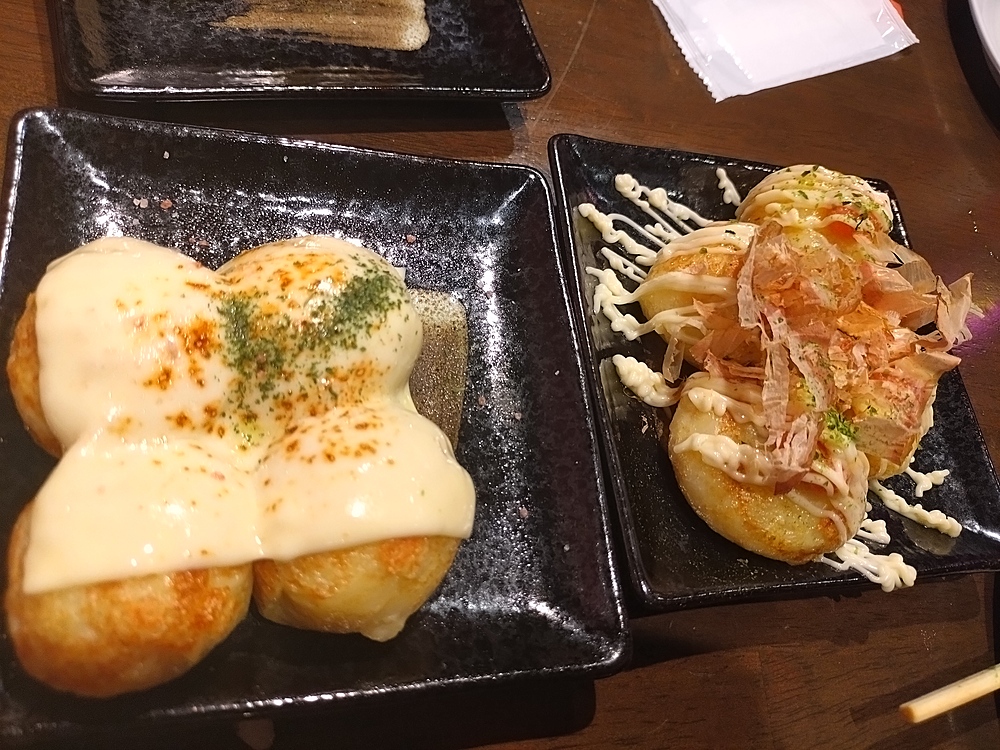 たこ焼きは1つの皿に4つ乗り、まず最初に4種類盛られて提供。