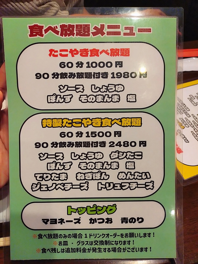 前から気になっていたたこ焼き食べ放題、アルコール飲み放題のお店へ初潜入。