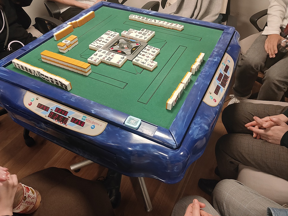 通常麻雀は4人でテーブルを囲んでやるものなのですが、ペアを組むことによって、8,9人で「あーでもないこーでもない🌠」と言いながら、ワイワイ賑やかに楽しめるので、ただ麻雀をやるより全然面白いですね(^^)/