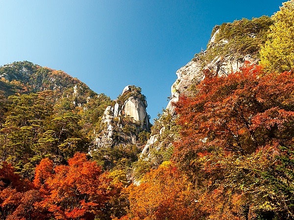 富士山と並ぶ山梨県の人気観光スポットの昇仙峡!原生林を流れる渓流がいくつもの景観を作り、仙娥滝(せんがたき)をはじめ、断崖や奇岩の景観が見事な渓谷美を作り上げます。西沢渓谷と1、2を争う人気の紅葉スポットです。渓谷沿いにはハイキングコースも整備され、普段着でも手軽に楽しむことができるのも魅力のひとつです。
