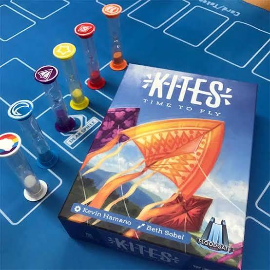 『KITES(カイト)』は、凧あげをテーマにしたリアルタイム協力型ボードゲームです。プレイヤーたちはチームで協力し、6色の砂時計を“凧”に見立てて、全ての砂が落ちきらないように管理します。手番では手札からカードを1枚出し、対応する色の砂時計をひっくり返すことで凧を空に保ちます。全員で手番を素早く回しながら、絶えず砂時計の状況を把握し、声を掛け合って連携するのがポイント。タイミングを誤ると凧が落ちてゲームオーバー。短時間で盛り上がれるスピード感と、緊張感あふれるチームワークが魅力のパーティーゲームです。