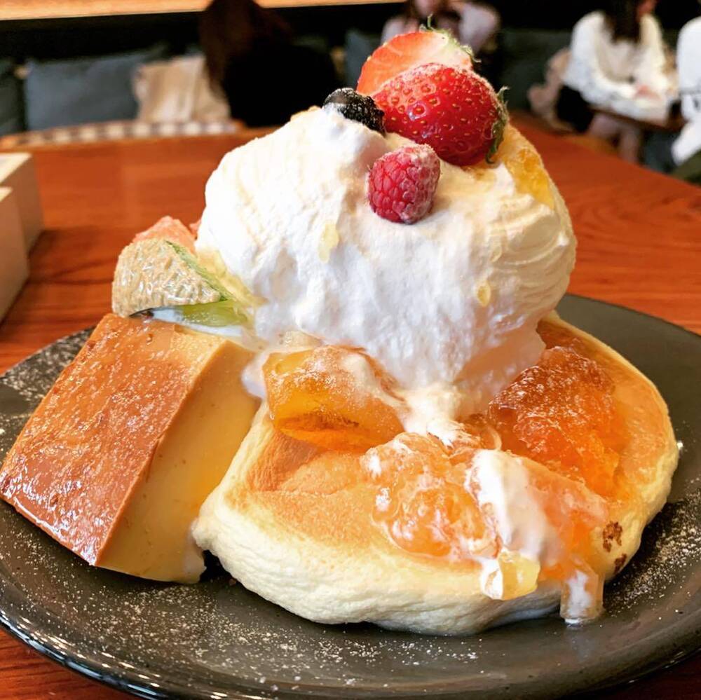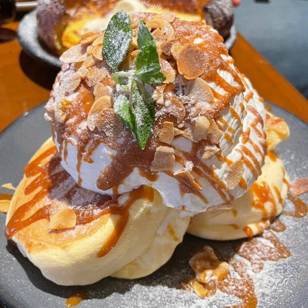 看板メニューはスフレ系のふわふわパンケーキで、クリームは軽やかな甘さ、生地もサッと食べられる軽さが魅力です🍭🍭