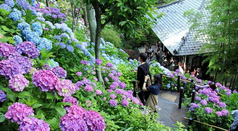 日本最大級の木造観音像、四季折々の花(特にアジサイ)、海を一望できる見晴台が魅力の「鎌倉の西方極楽浄土」と称される名刹で、6月のアジサイ路や弁天窟、和み地蔵など、写真映えするスポットも満載で院内にはカフェもあります(入山料500円)