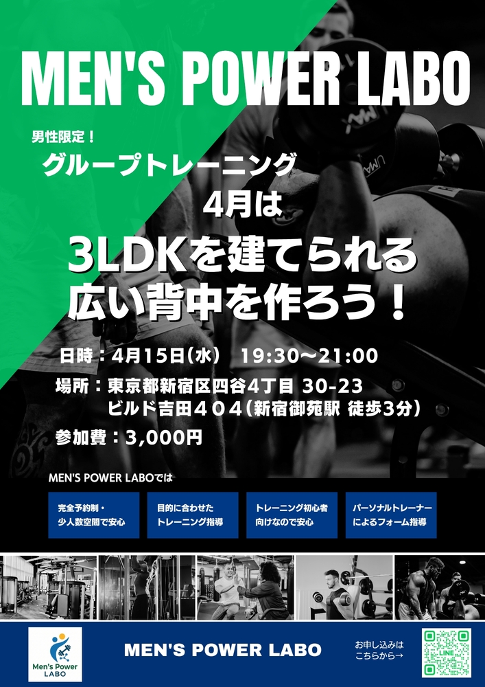 新宿駅近くのジムで、4月15日水曜19時30分スタート!男性初心者限定でグループトレーニング体験を開催します🏋️♂️