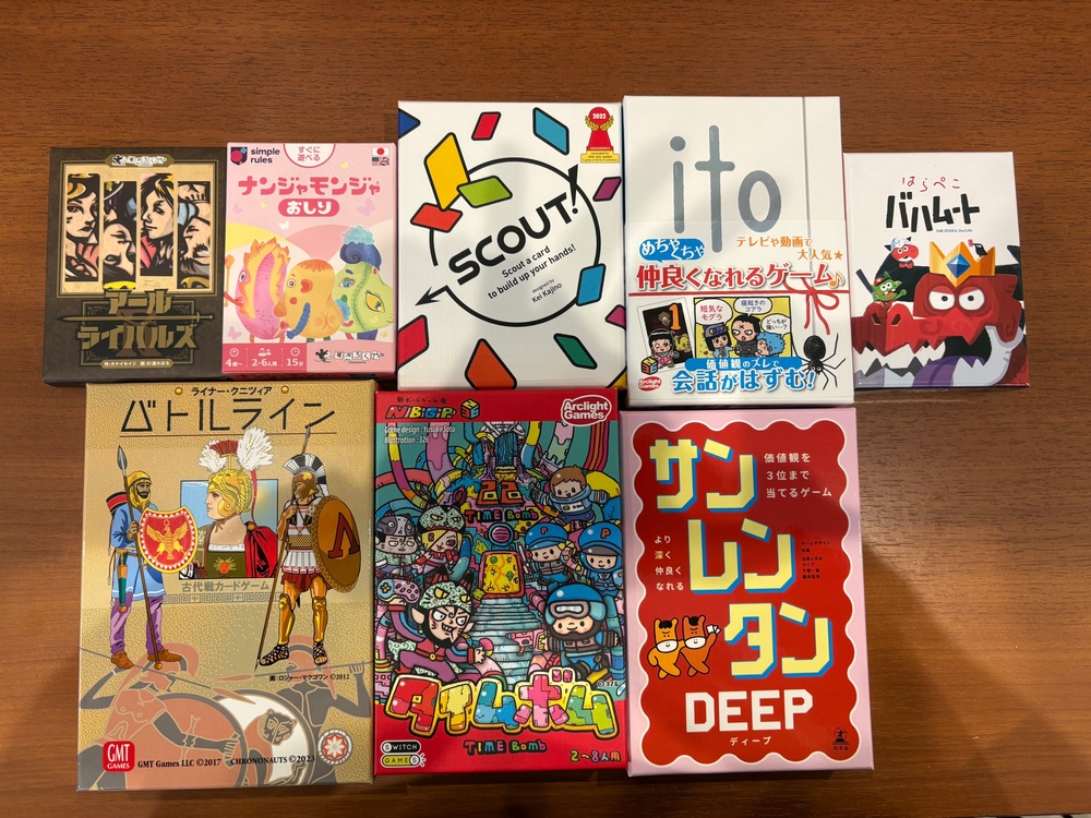 SCOUTやitoなど、ルールがシンプルで初めてでもすぐ遊べるゲームを中心に遊びます。