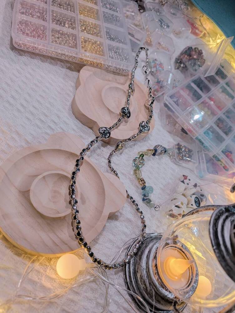 約50種類のビーズから好きなパーツを選び、自分だけのアクセサリーを作れます。