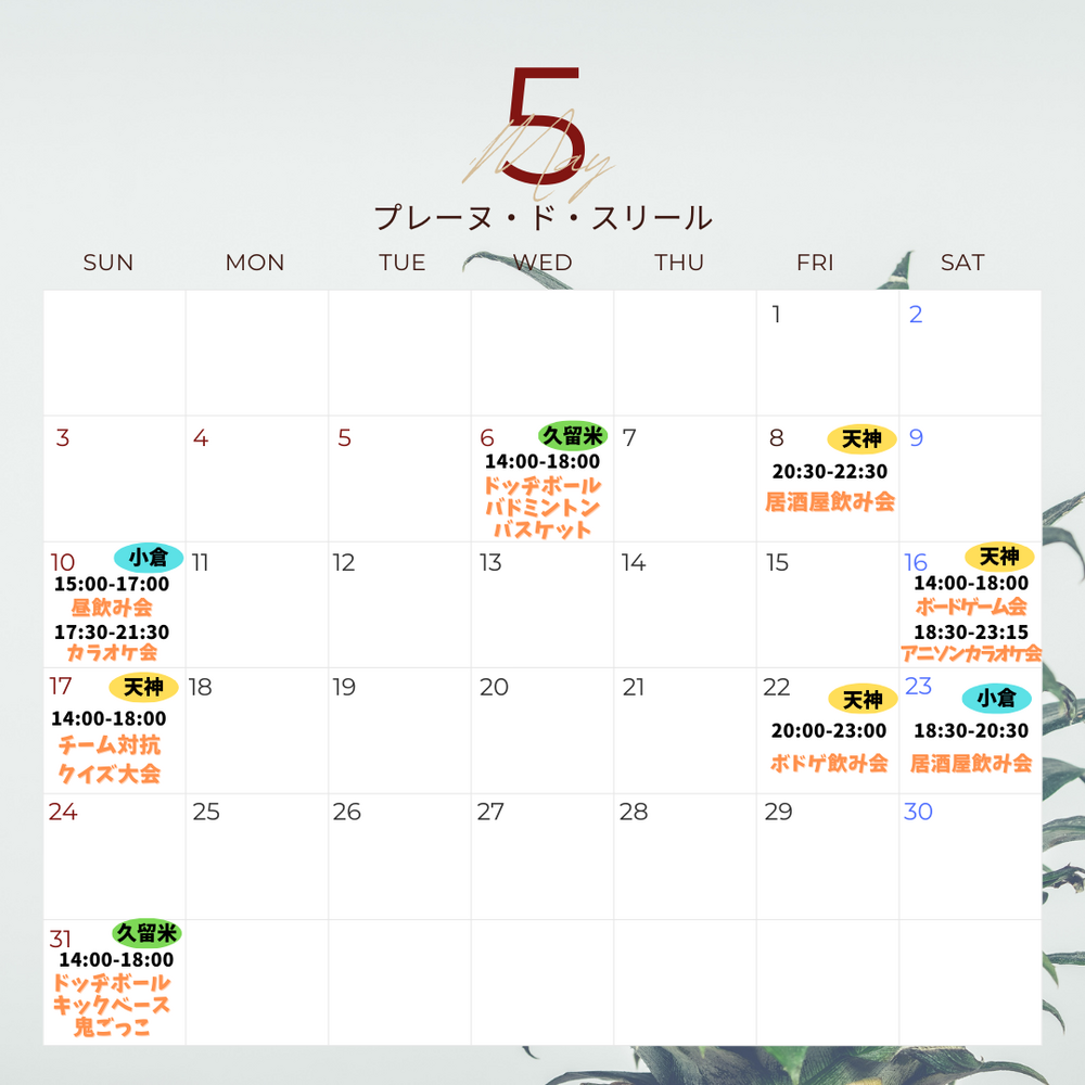 福岡で活動している友達作りサークル『Plein de sourires(プレーヌ・ド・スリール)』と申します!