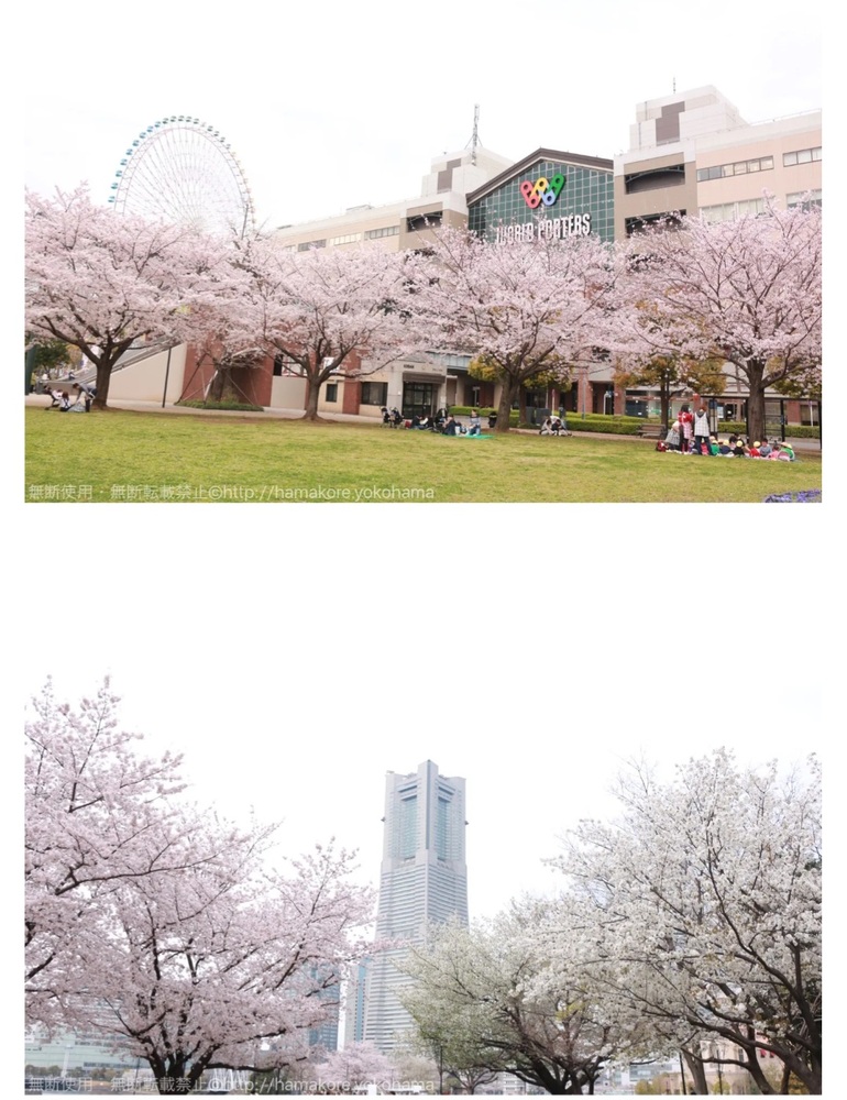 横浜みなとみらいのワールドポーターズ前の芝生でのんびりお花見しましょう🌸🍻