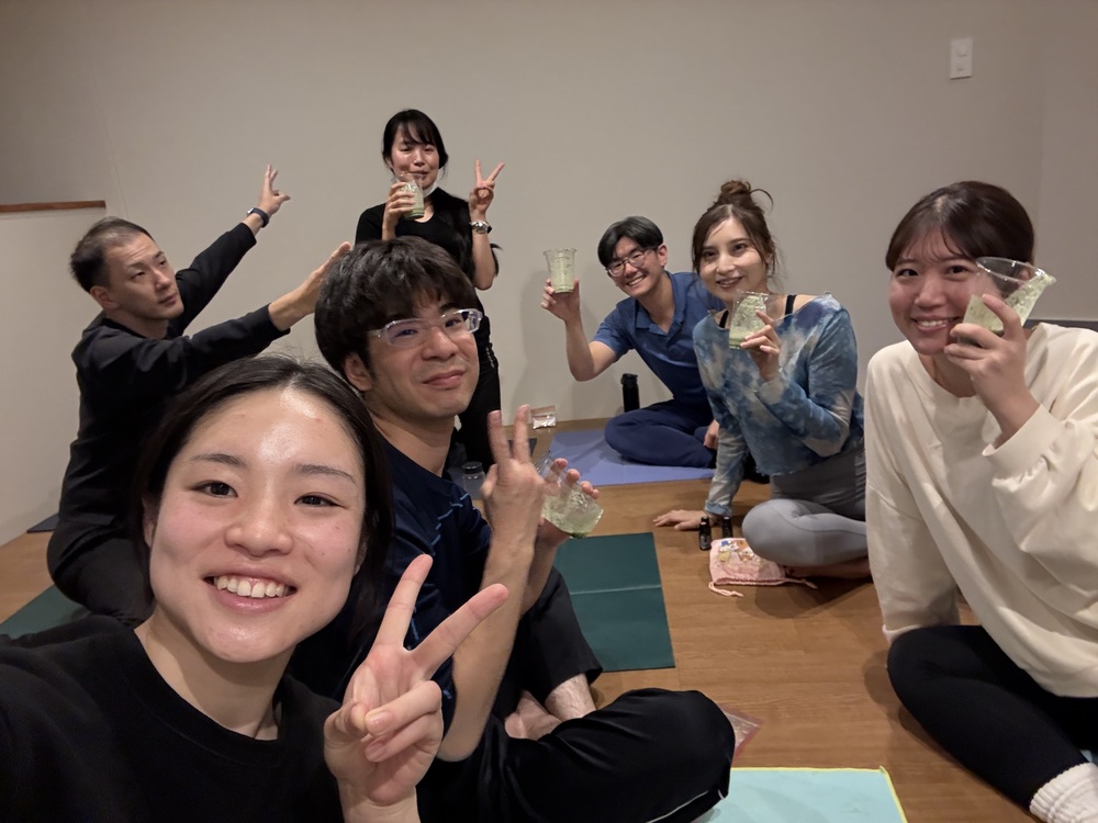 ヨガの後は、おしゃべりしながら新しい仲間とつながるチャンスもあります!